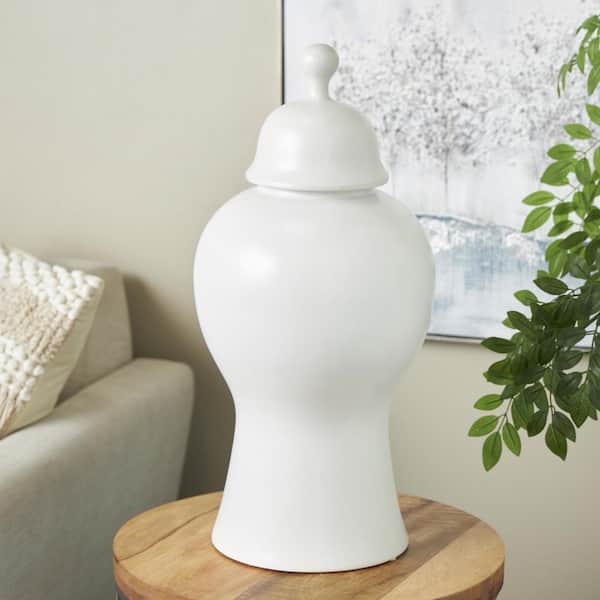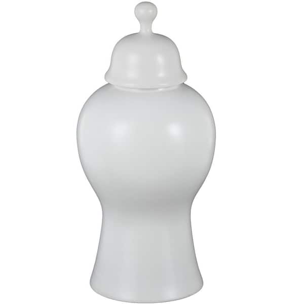 White Ceramic Round Hourglass Decorative Jars with Lid and Ball Knob