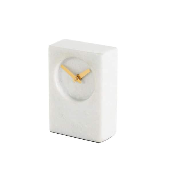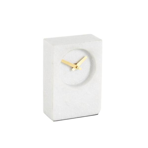White Marble Minimalistic Rectangular Clock with Recessed Numberless Clockface