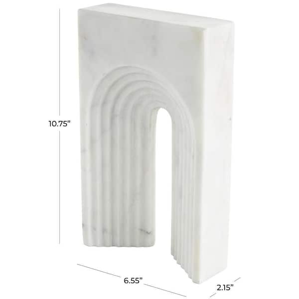 White Marble Rectangular Geometric Sculpture with Arched Groove Interior