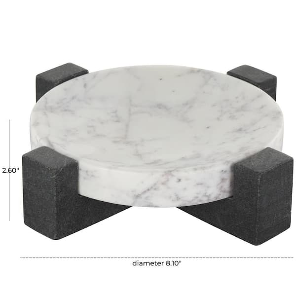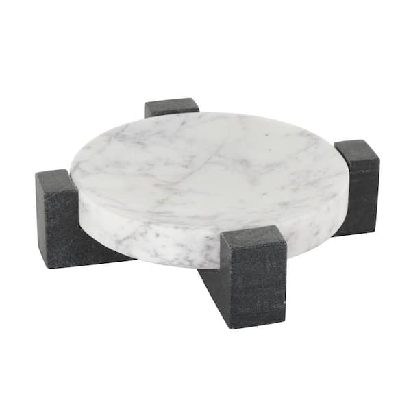 White Marble Round Geometric Decorative Tray with Black X-Shaped Base
