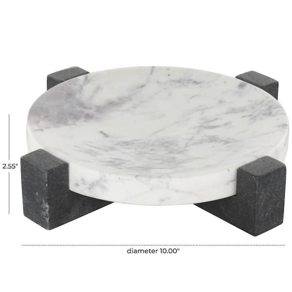 White Marble Round Geometric Decorative Tray with Black X-Shaped Base