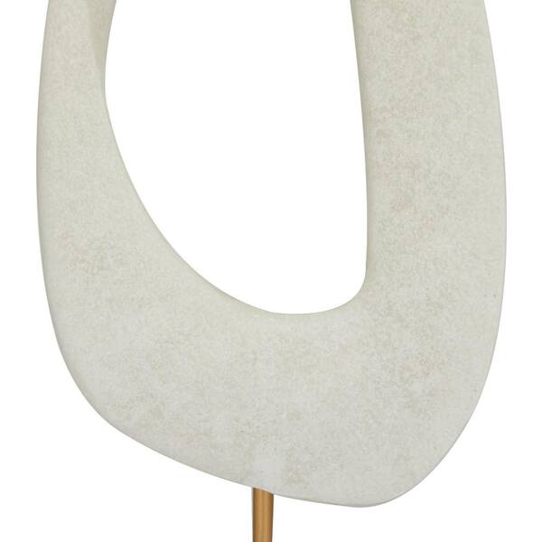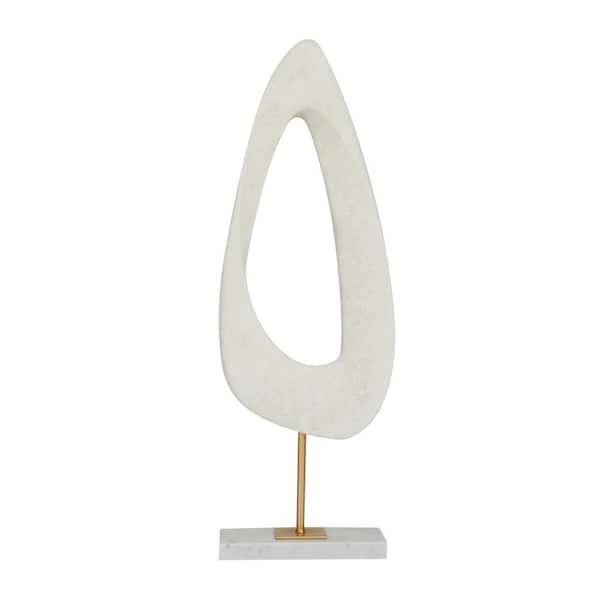 White Polystone Cut-Out Abstract Sculpture with Marble Stand