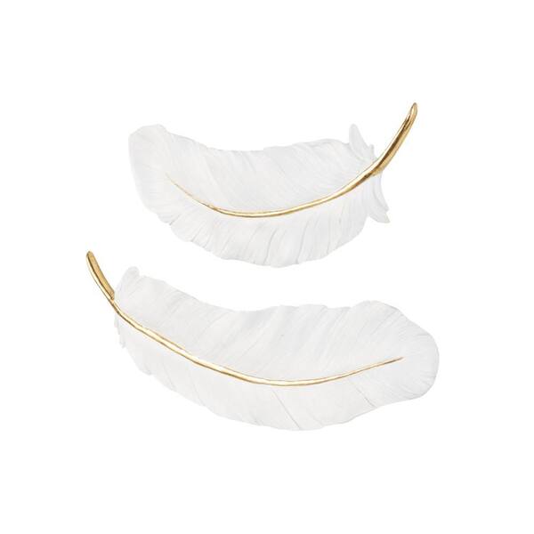 White Resin Feather Wall Sculpture with Gold Foil Accent (Set of 2)