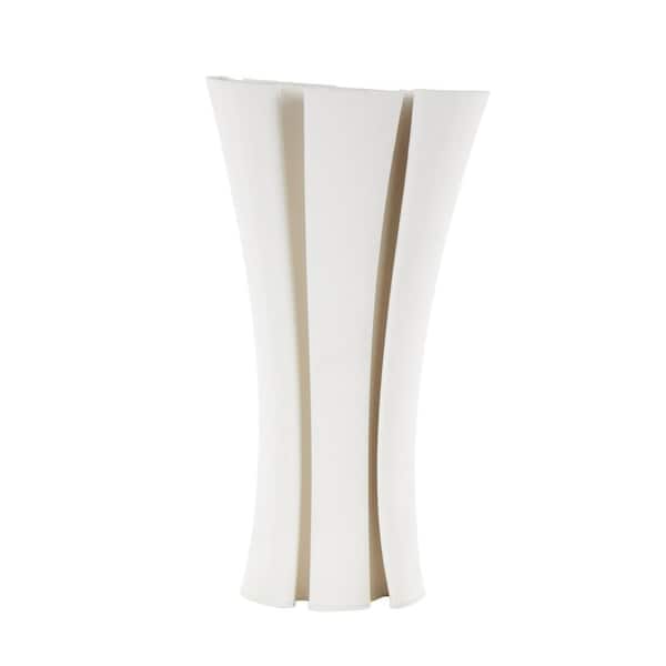 White Ribbed Dimensional Folded Ceramic Abstract Decorative Vase with Curvy Rim