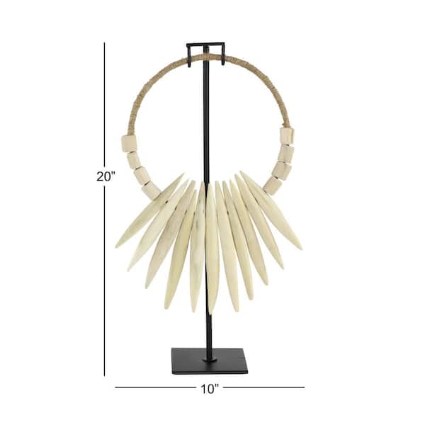 White Teak Wood Handmade Tribal Necklace Sculpture with Stand