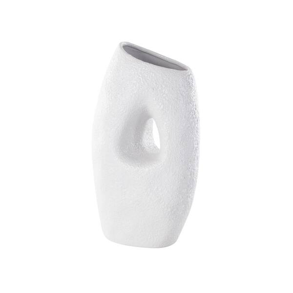 White Textured Ceramic Abstract Decorative Vase with Cutout Center