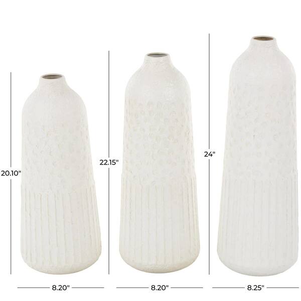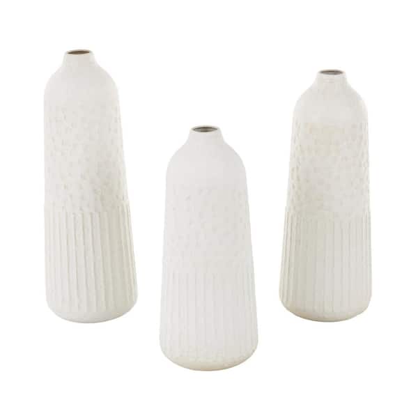 White Textured Metal Decorative Vase with Honeycomb Pattern (Set of 3)