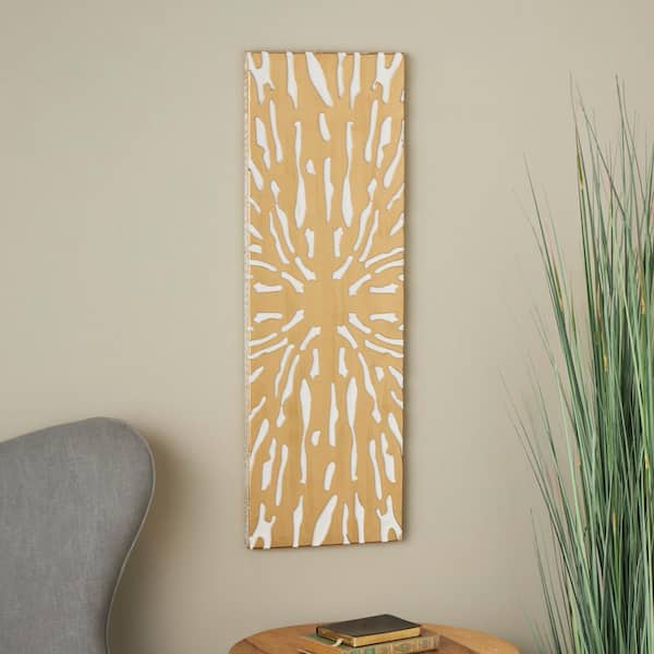 Wooden Gold Abstract Carved Starburst Wall Art with White Backing