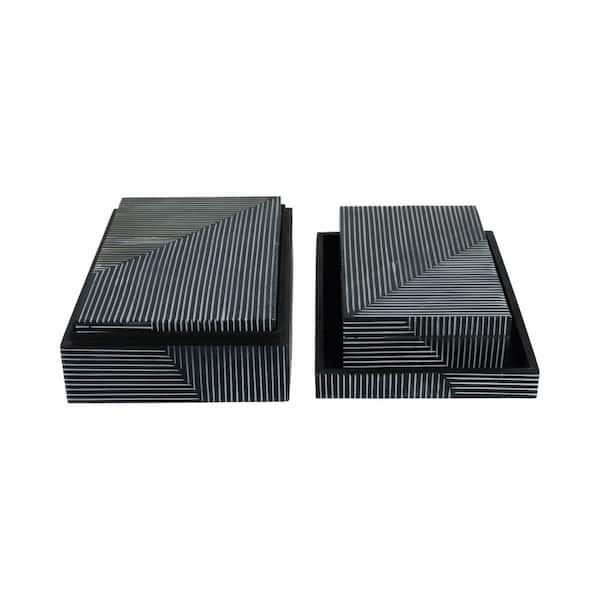 10/11/12 in. Blue Wood and Resin Pinstripe Design Decorative Box (Set of 3)