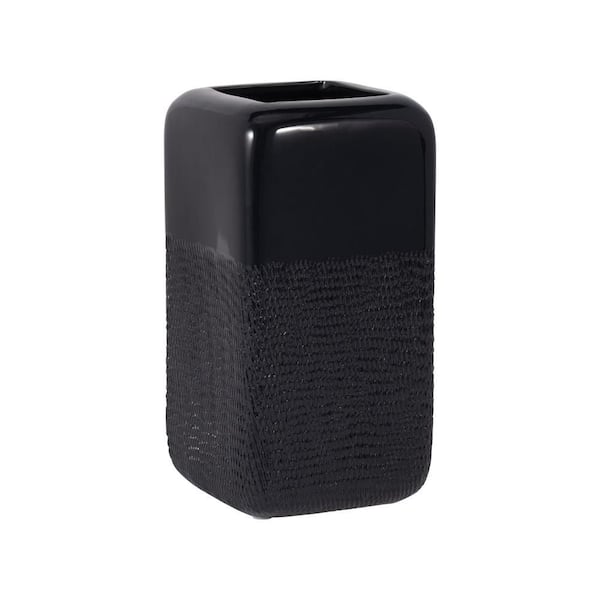 10 in. Black Stoneware Square Grooved Decorative Vase