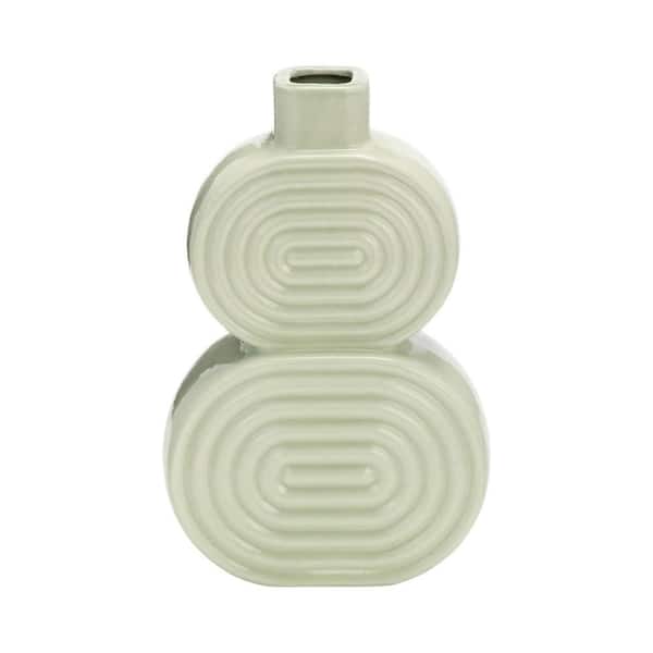 10 in. Cucumber Green Stoneware Geometric Stacked Circles Decorative Vase