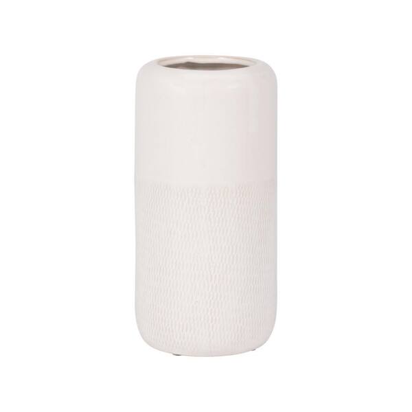 10 in. Ivory Stoneware Grooved Decorative Vase