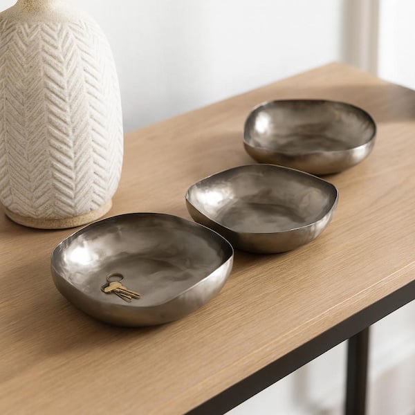 11/14/17 in. Bronze Metal Round Organic Shaped Decorative Bowls (Set of 3)