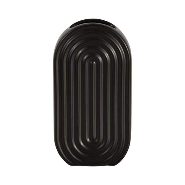 11 in. Black Stoneware Geometric Ridged Decorative Vase