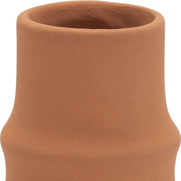 11 in. Red Ceramic Cylinder Modern Ring Pattern Decorative Vase