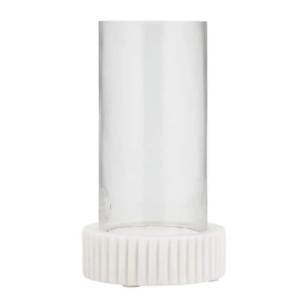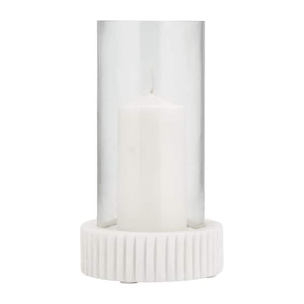 11 in. White Marble Hurricane Candle Holder
