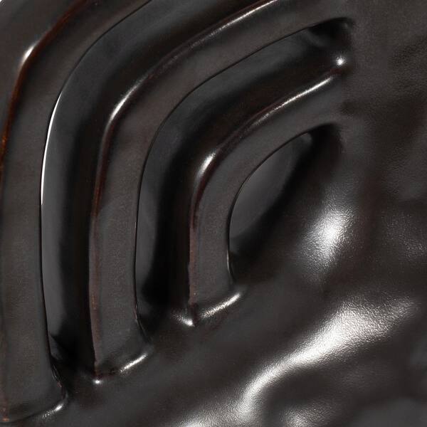 12 in. Black Ceramic Geometric Decorative Vase with Metallic Triple Handles