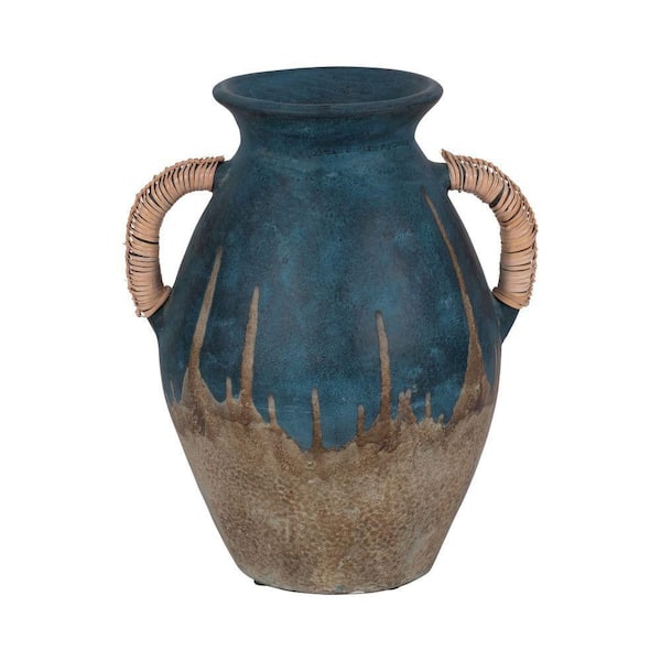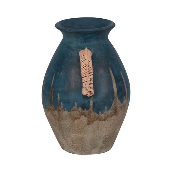 12 in. Blue Ceramic Eared in Ombre Finish Decorative Vase