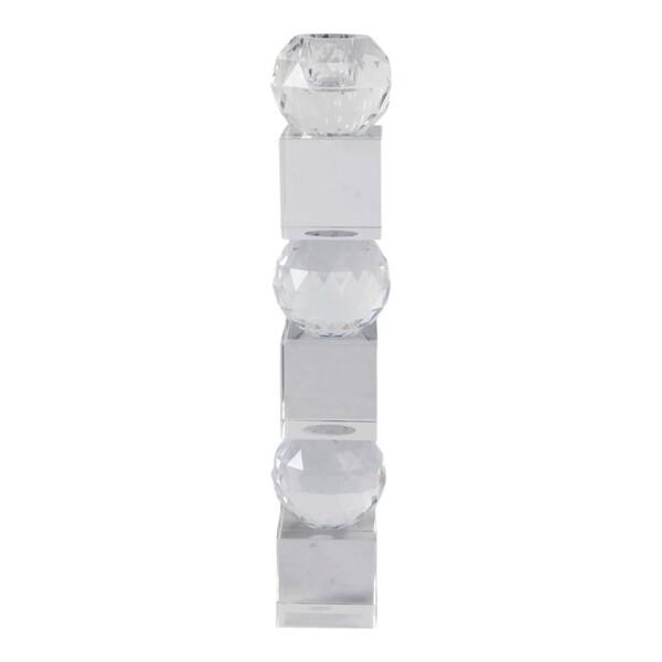 12 in. Clear Glass Faceted Crystal Orbs Taper Candle Holder