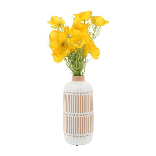 12 in. Ivory Stoneware Aztec Decorative Vase