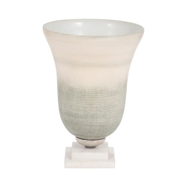 12 in. Sage Green and Ivory Metal Trumpet Decorative Vase on Marble Vase