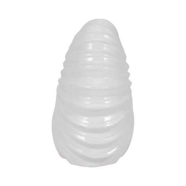 12 in. White Stoneware Round Shell Shaped Decorative Vase