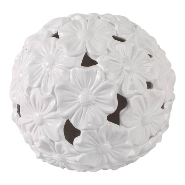 12 in. x 11 in. White Stoneware Flower Cut-Out Orb Garden Statue