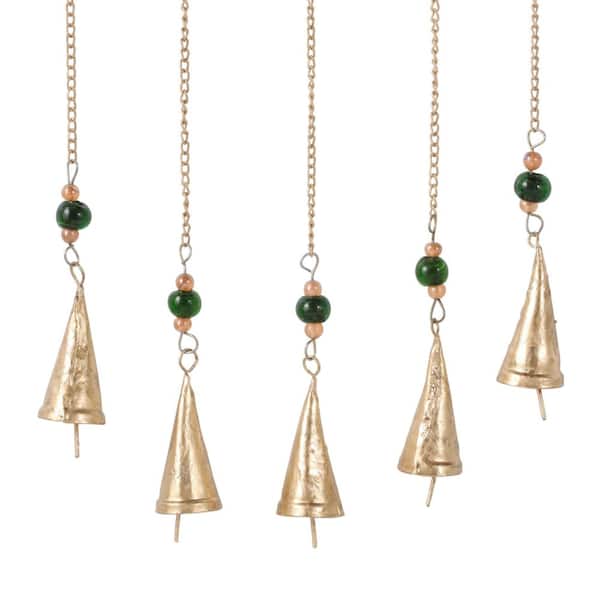 12 in. x 35 in. Green Wood and Metal Beaded Hummingbird Wind Chime