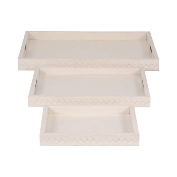13/18/24 in. Ivory Resin Woven Trays, (Set of 3)