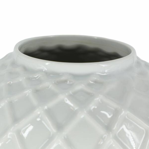 14.25 in. White/Gold Stoneware Rope Lined Temple Jar