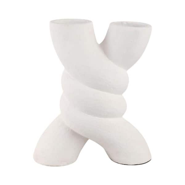 14 in. White Ceramic Geometric Twisted X Shape Decorative Vase