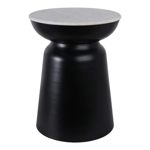 15 in. Black Round Marble Top Solid Accent Table with Metal Base