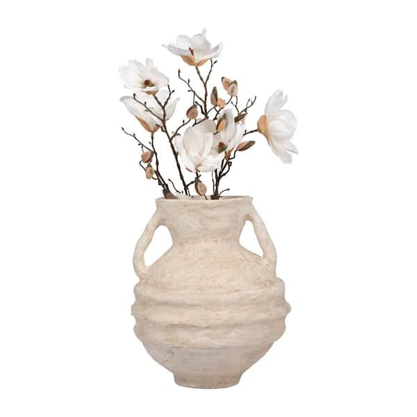 15 in. White Ceramic Amphora Decorative Vase with Handles