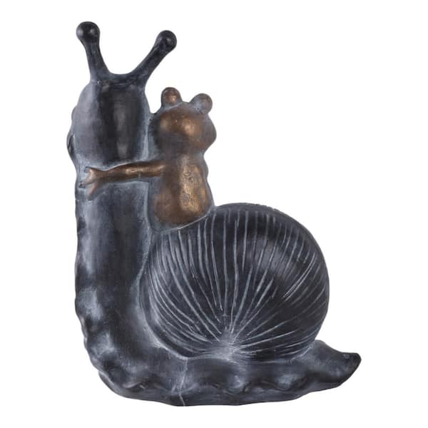 15 in. x 19 in. Gray Resin Gold Frog On Snail Garden Statue
