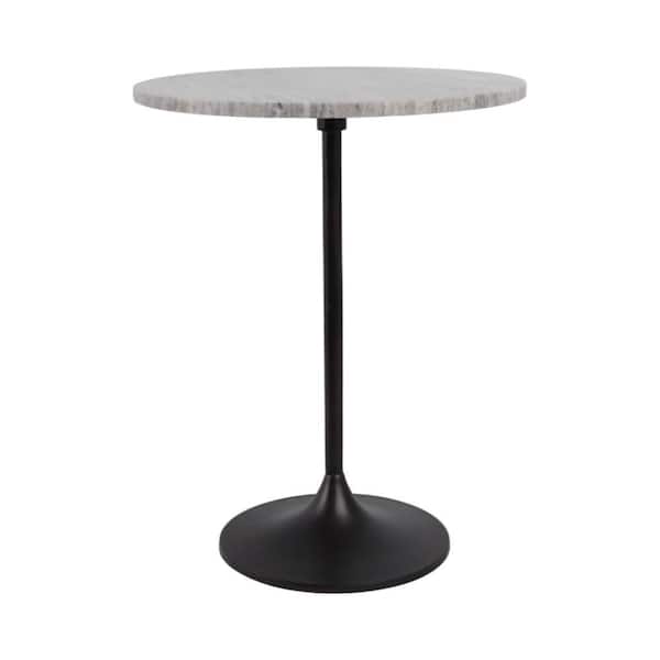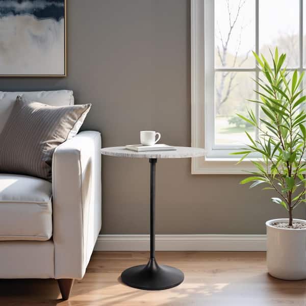 16 in. Beige Round Marble Twist Accent Table