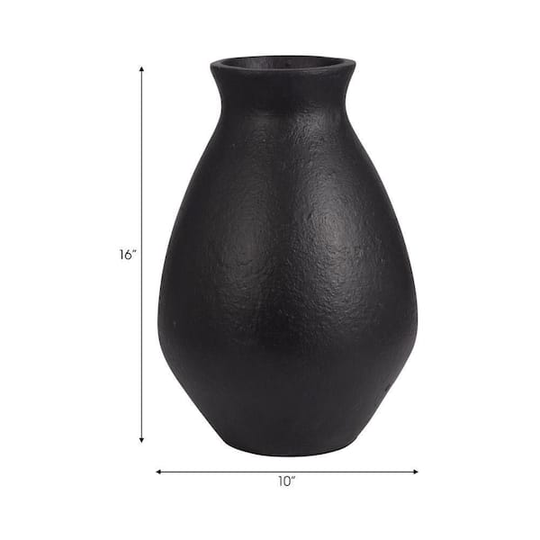 16 in. Black Pottery Round Decorative Vase