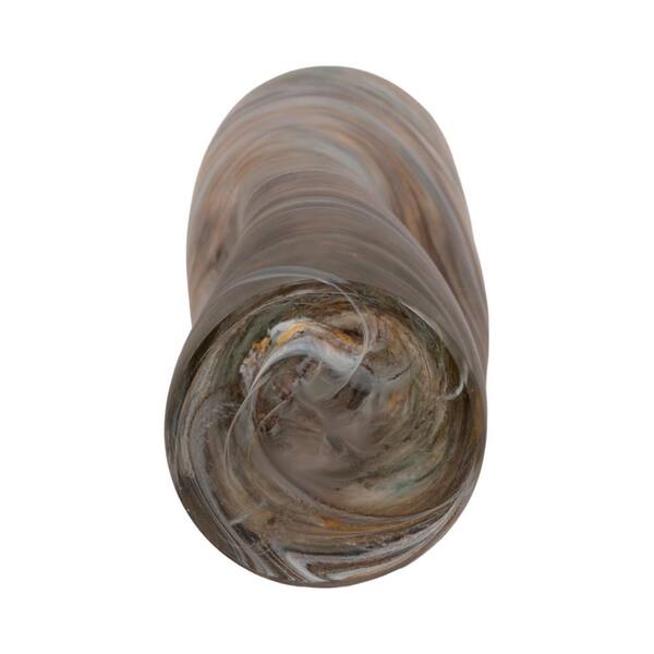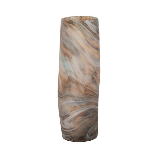 16 in. Ivory Glass Cylinder Dimpled Alabaster Decorative Vase