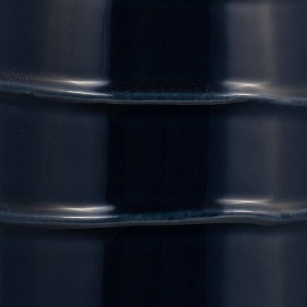 17 in. Navy Blue Ceramic Cylinder Tribal Pattern Decorative Vase