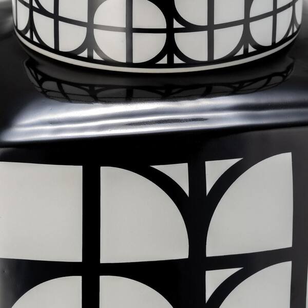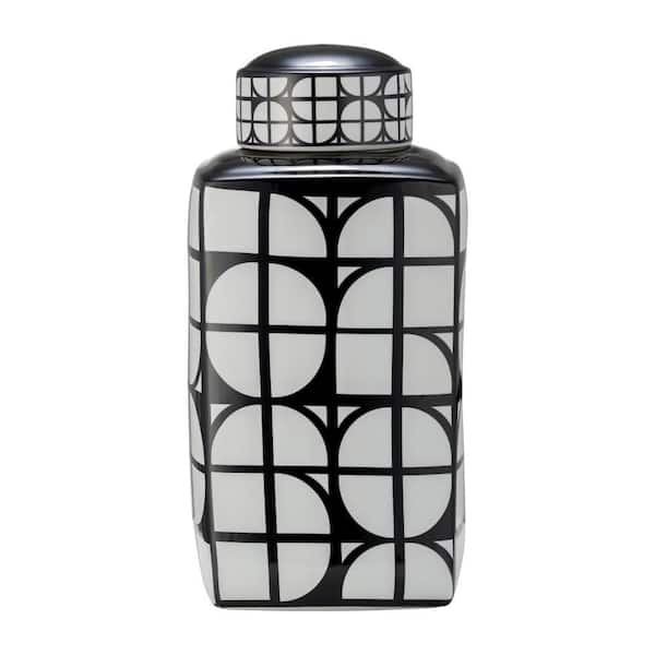 18 in. Black Stoneware Square Decorative Jar with Lid