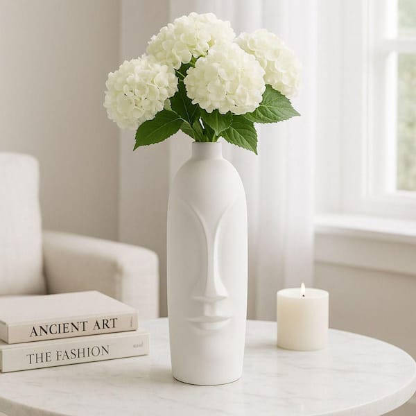 18 in. White Ceramic with Face Design Decorative Vase