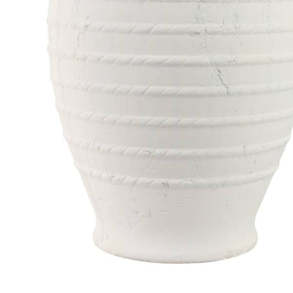 20 in. White/Ivory Terra Cotta Round Rope Ribbed Decorative Vase