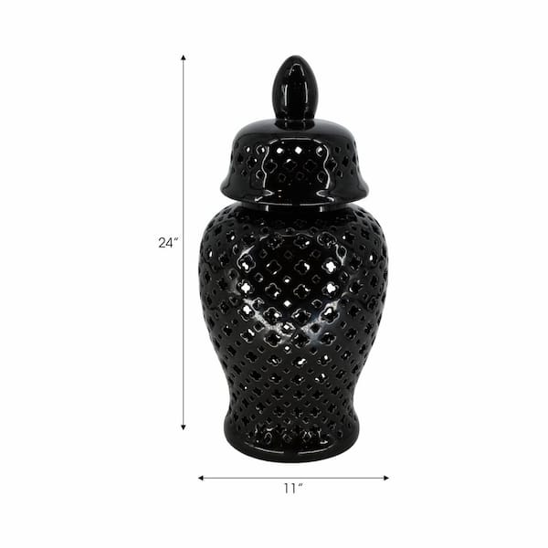 24 in. Black Stoneware Cut-out Clover Temple Jar