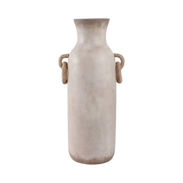 24 in. White Ceramic Cylinder Decorative Vase with Rattan Handles