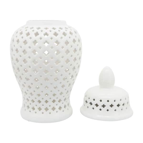 24 in. White Stoneware Cut-out Clover Temple Jar