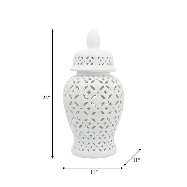24 in. White Stoneware Cut-out Daisies Temple Jar