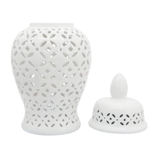 24 in. White Stoneware Cut-out Daisies Temple Jar