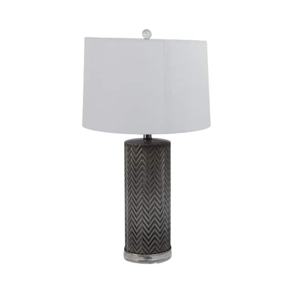 28 in. Gray Chevron Table Lamp with White Linen Shade