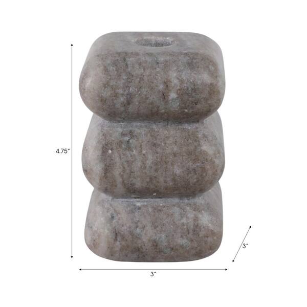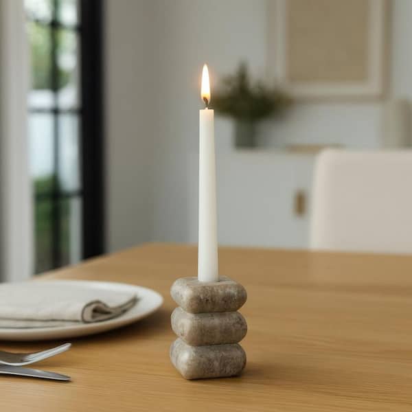 4.75 in. Ivory Stone Square Modern Curvy Pillar Taper Candle Holder
