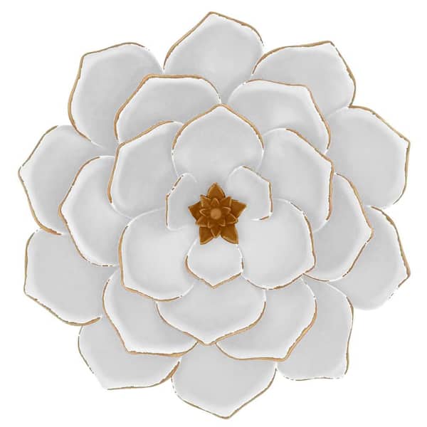 4 in. x 17 in. White Gold Multi-layer Flower Metal Work Wall Art