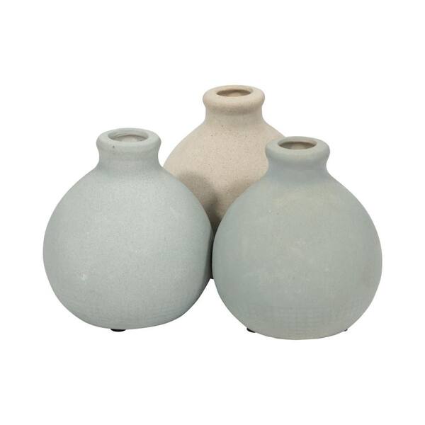 5 in. Blue Ceramic Bud Round Shape Multi-Toned Decorative Vase (Set of 3)